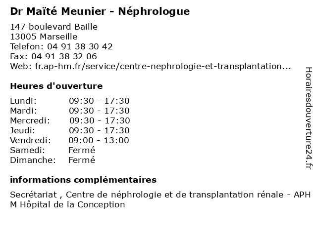 1 Dr Philippe Brunet - Néphrologue (Distance: 0,00 km) 147 boulevard Baille, 13005 Marseille brunet, consultation, docteur, dr, med, médecin, médecine, néphrologue, philippe, traitement 2 Pr Yvon Berland - Néphrologue (Distance: 0,00 km) 147 boulevard Baille, 13005 Marseille berland, consultation, docteur, med, médecin, médecine, néphrologue, pr, traitement, yvon 3 Dr Jonathan Rouche - Néphrologue - secrétariat (Distance: 1,65 km) 3 Boulevard de Louvain, 13008 Marseille consultation, docteur, dr, jonathan, med, médecin, médecine, néphrologue, rouche, secrétariat, traitement 4 Maître Catherine Meunier - Avocate (Distance: 1,72 km) 14 rue Edouard Delanglade, 13006 Marseille avocate, avocats, catherine, civils, droits, juridiques, maître, meunier 5 Dr Hélène Sichez Com - Néphrologue (Distance: 2,40 km) 376 Avenue du Prado, 13008 Marseille com, dr, hélène, médecins, médicaments, néphrologue, santé, secrétariat, sichez, spécialiste 6 Maïté Saint-Arroman - Ostéopathe (Distance: 2,42 km) 68 Avenue de Saint-Julien, 13012 Marseille arroman, maïté, ostéo, ostéopathe, ostéopathes, saint, soins |