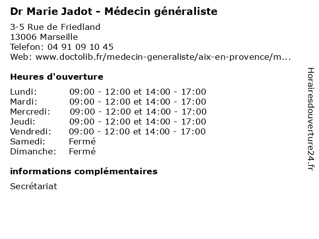 1 Dr Timothee Laudinet - Médecin généraliste (Distance: 0,04 km) 3 Rue de Friedland, 13006 Marseille consultation, docteur, dr, généraliste, laudinet, med, médecin, timothee, traitement 2 Dr Tanguy Devaux - Médecin généraliste (Distance: 0,04 km) 3-5 Rue de Friedland, 13006 Marseille devaux, docteur, dr, generaliste, généraliste, medecin, médecin, soins, tanguy 3 Medecin Marie Pierre Pingannaud (hépatologue) (Distance: 0,05 km) 23 Cours Gouffe, 13006 Marseille docteur, hépatologue, marie, medecin, medecine, pierre, pingannaud, sante, services 4 Dr Marie-Pierre Pingannaud- Gastro-entérologue et hépatologue - secrétariat (Distance: 0,05 km) 23 Cours Gouffé, 13006 Marseille consultation, docteur, dr, entérologue, et, gastro, hépatologue, marie, med, médecin, médecine, pierre, pingannaud, secrétariat, traitement 5 Dr Huguette Sable - Médecin généraliste (Distance: 0,13 km) 106 Rue Marengo, 13006 Marseille docteur, dr, generaliste, généraliste, huguette, medical, médecin, sable, soin 6 Dr Marie Dominique Benmoura - Gynécologue (Distance: 0,20 km) 1 Rue d'Eylau, 13006 Marseille benmoura, care, clinic, dominique, dr, gynécologue, health, marie |