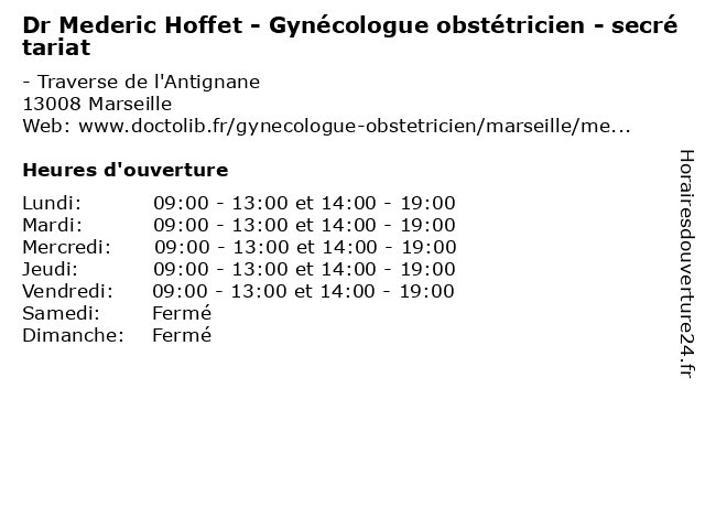 | Lundi | 09:00-13:00 et 14:00-19:00 |
