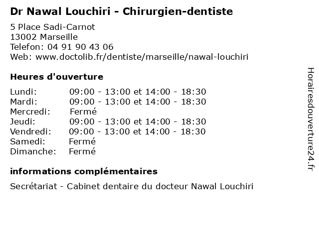 | Mardi | 09:00-13:00 et 14:00-18:30 |