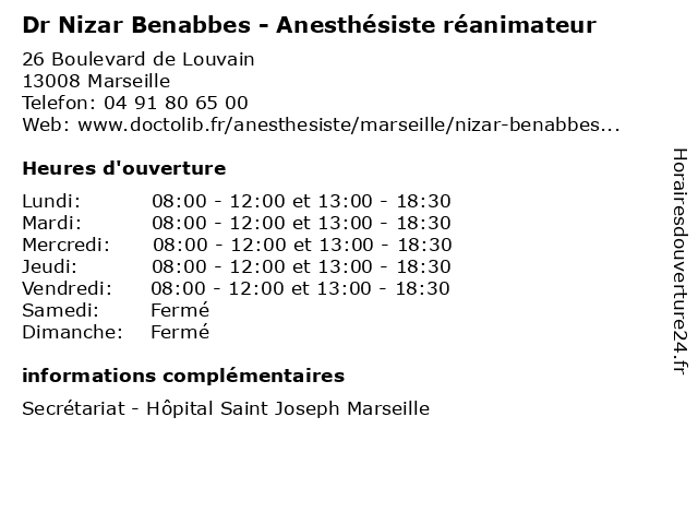 | Mercredi | 08:00-12:00 et 13:00-18:30 |