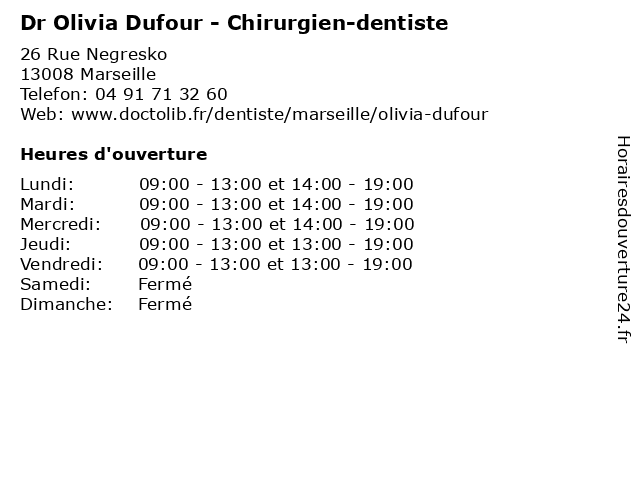| Lundi | 09:00-13:00 et 14:00-19:00 |