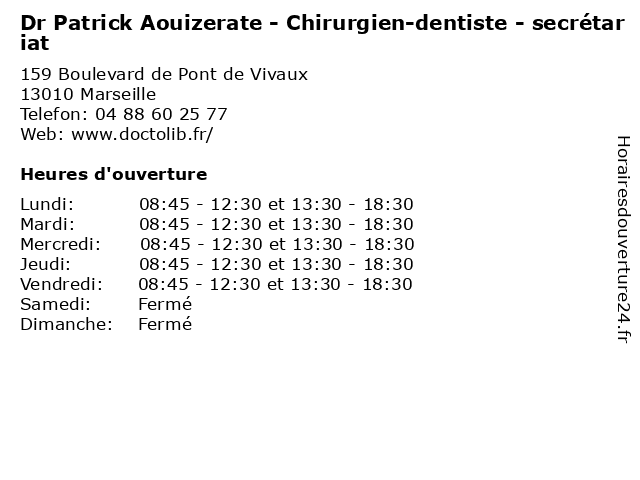 | Lundi | 08:45-12:30 et 13:30-18:30 |