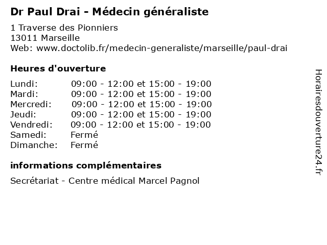 | Lundi | 09:00-12:00 et 15:00-19:00 |