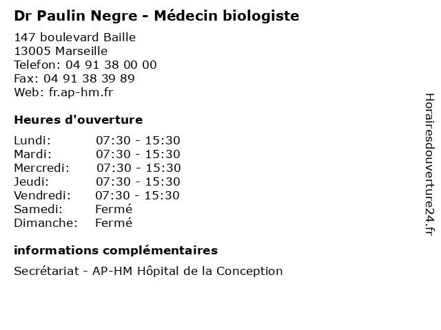 1 Dr Sophie Desplat-Jego - Médecin biologiste (Distance: 0,00 km) 147 boulevard Baille, 13005 Marseille biologiste, consultation, desplat, docteur, dr, jego, med, medecine, medical, médecin, sophie, traitement 2 Dr Andreas Stein - Médecin biologiste (Distance: 0,00 km) 147 boulevard Baille, 13005 Marseille andreas, biologiste, consultation, docteur, dr, med, medecine, medical, médecin, stein, traitement 3 Dr Anne Barlier - Médecin biologiste (Distance: 0,00 km) 147 boulevard Baille, 13005 Marseille anne, barlier, biologiste, consultation, docteur, dr, med, medecine, medical, médecin, traitement 4 Dr Odile Paulmyer-Lacroix - Médecin biologiste (Distance: 0,00 km) 147 boulevard Baille, 13005 Marseille biologiste, consultation, docteur, dr, lacroix, med, medecine, medical, médecin, odile, paulmyer, traitement 5 Dr Armelle Tassy-Negre - Anatomo-cyto-pathologiste (Distance: 0,56 km) 264 Rue Saint-Pierre, 13005 Marseille anatomo, armelle, consultation, cyto, docteur, dr, med, medecine, medical, médecin, negre, pathologiste, tassy, traitement 6 Au Negre (Distance: 1,33 km) 71 Rue De Rome, 13001 Marseille boulangeries, cafes, chocolats, détail, negre, voisin |