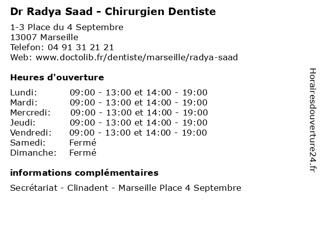 Termes de recherche pour Dr Radya Saad - Chirurgien Dentiste:marseille, place, septembre, dr, saad, dentiste, chirurgien, radya, 13007, clinadent |