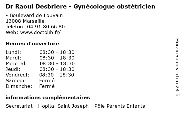 1 Dr Raoul Desbriere - Gynécologue obstétricien (Distance: 0,61 km) 444 Rue Paradis, 13008 Marseille consultation, desbriere, docteur, dr, gynécologue, med, médecin, médecine, obstétricien, raoul, secrétariat, traitement 2 Dr Eric Glowaczower - Gynécologue médical et obstétrique (Distance: 0,00 km) - Boulevard de Louvain, 13008 Marseille consultation, docteur, dr, eric, et, glowaczower, gynécologue, med, médecin, médecine, médical, obstétrique, secrétariat, traitement 3 Dr Charlotte Laplane - Gynécologue et Obstétricien (Distance: 0,00 km) - Boulevard de Louvain, 13008 Marseille charlotte, consultation, docteur, dr, et, gynécologue, laplane, med, médecin, médecine, médical, obstétricien, obstétrique, secrétariat, traitement 4 Dr Elisabeth Chereau-Ewald - Gynécologue obstétricien - secrétariat (Distance: 0,09 km) 26 Boulevard de Louvain, 13008 Marseille chereau, dr, elisabeth, ewald, gynécologue, médecins, médicaments, obstétricien, santé, secrétariat, spécialiste 5 Dr Laura Couka Tenoudji-Cohen - Gynécologue médical (Distance: 0,09 km) 26 Boulevard de Louvain, 13008 Marseille cohen, couka, dr, gynécologue, laura, médecins, médical, médicaments, santé, secrétariat, spécialiste, tenoudji 6 Dr Emmanuelle Cristofari-Marquand - Gynécologue médical (Distance: 0,09 km) 26 Boulevard de Louvain, 13008 Marseille cristofari, dr, emmanuelle, gynécologue, marquand, médecins, médical, médicaments, santé, secrétariat, spécialiste |