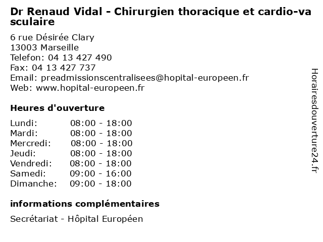 1 Dr Renaud Vidal - Chirurgien thoracique et cardio-vasculaire (Distance: 13,39 km) 33 Boulevard des Farigoules, 13400 Aubagne cardio, chirurgien, consultation, docteur, dr, et, med, médecin, médecine, renaud, secrétariat, thoracique, traitement, vasculaire, vidal 2 Dr Caroline Verrier - Chirurgien vasculaire (Distance: 0,00 km) 6 rue Désirée Clary, 13003 Marseille caroline, chirurgien, consultation, docteur, dr, med, médecin, médecine, traitement, vasculaire, verrier 3 Dr Morgane Vidal - Chirurgien-dentiste (Distance: 0,77 km) 151 Boulevard National, 13003 Marseille chirurgien, consultation, dentiste, docteur, dr, med, morgane, médecin, traitement, vidal 4 Maître Renaud de Laubier - Avocat (Distance: 1,99 km) 12 rue Breteuil, 13001 Marseille avocat, avocats, civils, de, droits, juridiques, laubier, maître, renaud 5 Maître Alain Vidal-Naquet - Avocat (Distance: 2,16 km) 16c Boulevard Notre Dame, 13006 Marseille alain, avocat, avocats, civils, droits, juridiques, maître, naquet, vidal 6 Maître Renaud Belnet - Avocat (Distance: 2,20 km) 3A Rue de la Clinique, 13004 Marseille avocat, avocate, avocats, belnet, civils, droits, juridiques, maître, renaud |