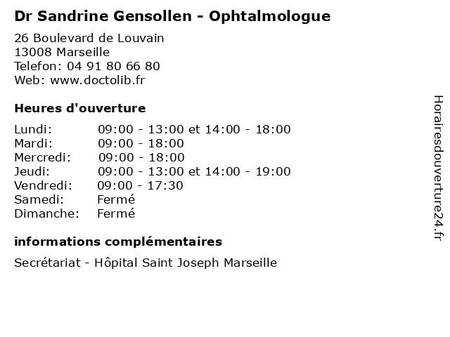 | Lundi | 09:00-13:00 et 14:00-18:00 |