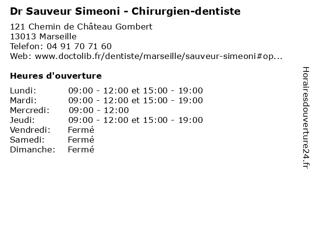 1 Dr Marie-Claude Lagouanelle-Simeoni - Médecin généraliste (Distance: 5,72 km) 264 Rue Saint-Pierre, 13005 Marseille claude, consultation, docteur, dr, généraliste, lagouanelle, marie, med, médecin, simeoni, traitement 3 Chez Sauveur (Distance: 6,09 km) 10 Rue d Aubagne, 13001 Marseille bar, bistro, bistrot, brasserie, café, chez, restaurant, restauration, sauveur 4 Dr Juliette Simeoni Alias - Chirurgien infantile (Distance: 7,61 km) - Boulevard de Louvain, 13008 Marseille alias, chirurgien, dr, infantile, juliette, médecins, médicaments, santé, secrétariat, simeoni, spécialiste 6 Gazonnières Saint Sauveur (Distance: 19,11 km) Chemin de la Caisse des Pins, 13710 Fuveau gazonnières, saint, sauveur |
