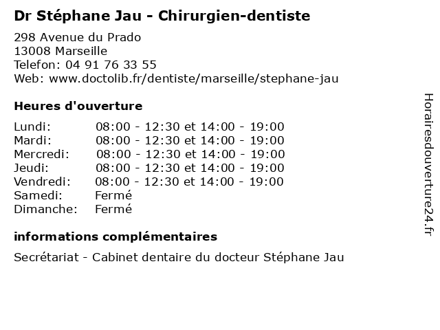 | Lundi | 08:00-12:30 et 14:00-19:00 |
