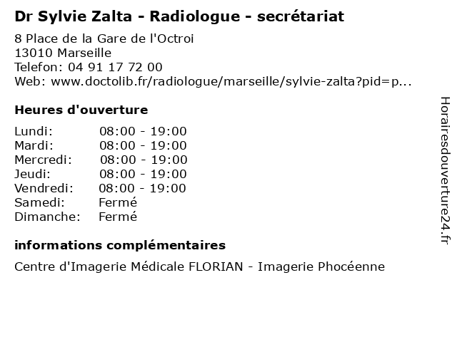 1 Dr Rémy Zalta - Chirurgien plasticien et esthétique (Distance: 1,51 km) 16 rue Gaston Berger, 13010 Marseille chirurgien, consultation, docteur, dr, esthétique, et, med, medecine, medical, médecin, plasticien, remy, rémy, traitement, zalta 2 Dr Sylvie Ronot-Bregigeon - Médecin généraliste (Distance: 2,37 km) 270 Boulevard de Sainte-Marguerite, 13009 Marseille bregigeon, consultation, docteur, dr, généraliste, med, médecin, médecine, ronot, sylvie, traitement 4 Sylvie Fau - Sophrologue (Distance: 2,84 km) 59 Avenue de Saint-Julien, 13012 Marseille fau, medecin, sante, sophro, sophrologue, sylvie 5 Maître Sylvie Spinelli - Avocate (Distance: 3,10 km) 232 avenue du Prado, 13008 Marseille avocate, avocats, civils, droits, juridiques, maître, spinelli, sylvie 6 |