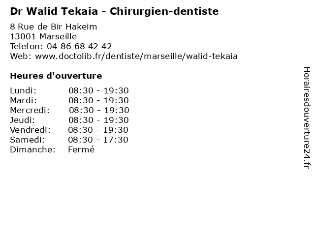 | Lundi | 08:30-19:30 |