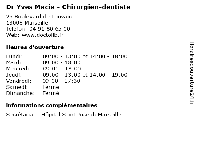 1 Dr Pierre-Yves Waller - Chirurgien maxillo-facial et stomatologue (Distance: 0,00 km) 26 Boulevard de Louvain, 13008 Marseille chirurgien, dr, et, facial, maxillo, médecins, médicaments, pierre, santé, secrétariat, spécialiste, stomatologue, waller, yves 2 Dr Jean-Yves Arlaud - Chirurgien orthopédiste et traumatologue (Distance: 0,00 km) 26 Boulevard de Louvain, 13008 Marseille arlaud, chirurgien, dr, et, jean, médecins, médicaments, orthopédiste, santé, secrétariat, spécialiste, traumatologue, yves 3 Yves Bourrel - Echographiste (Distance: 0,09 km) - Boulevard de Louvain, 13008 Marseille bourrel, echographiste, médecins, médicaments, santé, secrétariat, spécialiste, yves 4 Maître Yves Boyer - Avocat (Distance: 0,20 km) 2A boulevard de Louvain, 13008 Marseille avocat, avocate, avocats, boyer, civils, droits, juridiques, maître, yves 5 Dr Yves Ruffino - Chirurgien-dentiste (Distance: 0,49 km) 320 Avenue du Prado, 13008 Marseille chirurgien, dentiste, dr, médecin, médecine, médical, pharmaceutique, ruffino, traitement, yves 6 Dr Jean-Yves Arlaud - Chirurgien orthopédiste (Distance: 0,60 km) 118 Rue Jean Mermoz, 13008 Marseille arlaud, chirurgien, consultation, docteur, dr, jean, med, médecin, médecine, orthopédiste, secrétariat, traitement, yves |