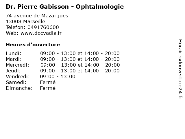 | Jeudi | 09:00-13:00 et 14:00-20:00 |