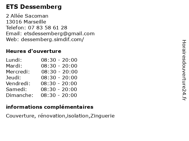 | Samedi | 08:30-20:00 |