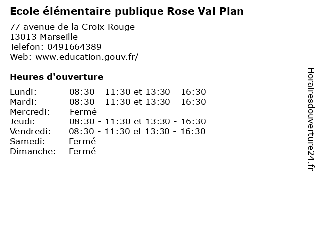 | Lundi | 08:30-11:30 et 13:30-16:30 |