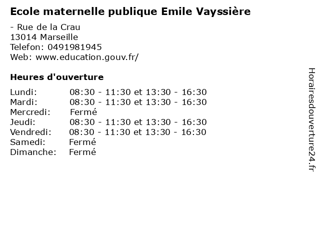| Mardi | 08:30-11:30 et 13:30-16:30 |