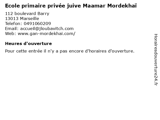 | Appeler Ecole primaire privée juive Maamar Mordekhaï | |