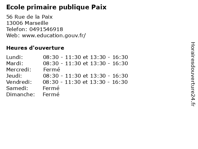 | Mardi | 08:30-11:30 et 13:30-16:30 |
