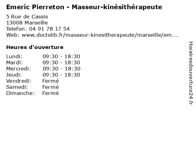 1 Axa Assurance Mme Emilie Pezin Et Emeric Pezin (Distance: 47,82 km) 157 Boulevard Georges Clemenceau, 83000 Toulon assurance, axa, emeric, emilie, et, mme, pezin 2 Faustine Guenoun-Ferrer - Masseur-kinésithérapeute (Distance: 0,00 km) 5 Rue de Cassis, 13008 Marseille docteur, faustine, ferrer, guenoun, kine, kinesitherapeute, kinésithérapeute, masseur 3 Laurine Brouqui - Masseur-kinésithérapeute (Distance: 0,00 km) 5 Rue de Cassis, 13008 Marseille brouqui, docteur, kine, kinesitherapeute, kinésithérapeute, laurine, masseur 4 Fabienne Poulet Schneider - Masseur-kinésithérapeute (Distance: 0,33 km) 36 Rue Jean Mermoz, 13008 Marseille docteur, fabienne, kine, kinesitherapeute, kinésithérapeute, masseur, poulet, schneider 5 Franck Giangreco - Masseur-kinésithérapeute (Distance: 0,39 km) 158 Rue du Rouet, 13008 Marseille docteur, franck, giangreco, kine, kinesitherapeute, kinésithérapeute, masseur 6 Laura Guerin - Masseur-kinésithérapeute (Distance: 0,46 km) 65 Avenue Jules Cantini, 13006 Marseille docteur, guerin, kine, kinesitherapeute, kinésithérapeute, laura, masseur |