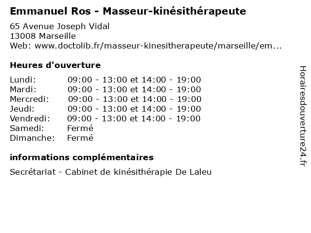 | Lundi | 09:00-13:00 et 14:00-19:00 |