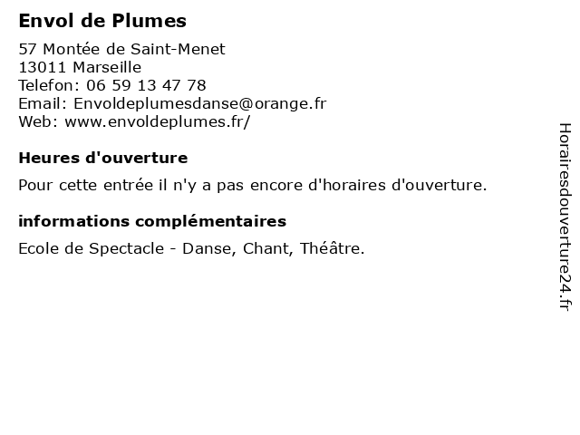 1 Envol des Sens - Ecole de Danse (Distance: 7,34 km) 21 Boulevard des Tilleuls, 13013 Marseille académie, cours, danse, de, des, ecole, envol, sens, école 2 Compagnie Evidanse (Distance: 0,88 km) 7 Rue de la Concorde, 13011 Marseille académie, compagnie, cours, danse, evidanse, école 3 Les Studios 2C' (Distance: 3,87 km) 1645 Route de la Légion, 13400 Aubagne 2c', académie, cours, danse, les, studios, école 4 Ascendanse & Co (Distance: 4,60 km) 35 Chemin Va À la Fontaine, 13190 Allauch académie, ascendanse, co, cours, danse, école 5 Nicolas E. L'Ecole du Spectacle (Distance: 6,73 km) 51 avenir Paul Cézanne, 13470 Carnoux-en-Provence académie, cours, danse, du, e., l'ecole, nicolas, spectacle, école 6 Marseille Tango (Distance: 7,45 km) 8 Rue Lieutenant Jean-Baptiste Meschi, 13005 Marseille académie, cours, danse, marseille, tango, école |