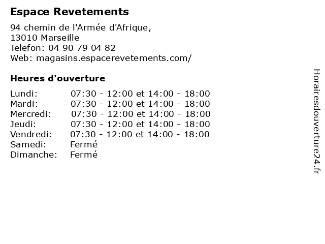| Lundi | 07:30-12:00 et 14:00-18:00 |