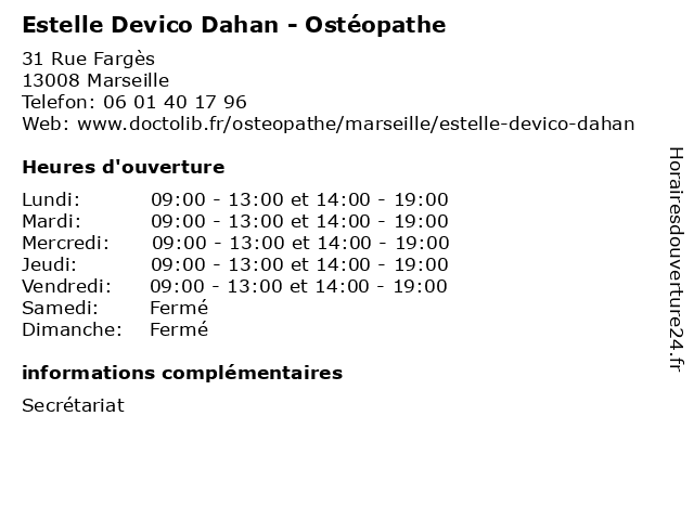 | Lundi | 09:00-13:00 et 14:00-19:00 |