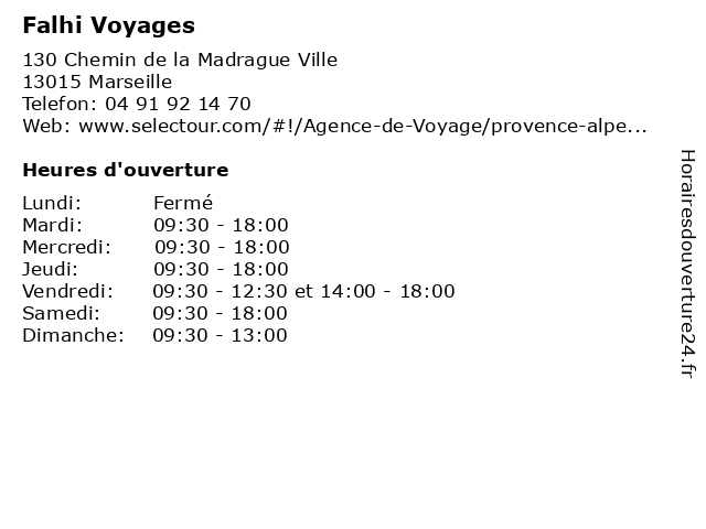 1 Falhi Voyages (Distance: 2,94 km) 2/4/6 Boulevard des Dames, 13002 Marseille billets, falhi, marseille, selectour, séjours, train, vols, voyage, voyages 2 Falhi Voyages (Distance: 3,32 km) 3 Rue Mazagan, 13001 Marseille billets, falhi, marseille, selectour, séjours, train, vols, voyage, voyages 3 Jetset Voyages / Falhi Voyages (Distance: 0,04 km) 130 Chemin de la Madrague Ville, 13015 Marseille agence, billet d'avion et hôtel pour votre club, falhi, jetset, séjour, voyages 4 Jetset Voyages / Falhi Voyages (Distance: 0,04 km) 130 Chemin de la Madrague Ville, 13015 Marseille agence, billet d'avion et hôtel pour votre club, falhi, jetset, séjour, voyages 5 Jetset Voyages / Nostalgie Voyages (Distance: 2,48 km) 81 Avenue Camille Pelletan, 13003 Marseille agence, billet d'avion et hôtel pour votre club, jetset, nostalgie, séjour, voyages 6 Linea Voyages (Distance: 2,74 km) 47 Boulevard des Dames, 13002 Marseille agence, bateau, billet d'avion, hôtel, linea, séjour, voyages |