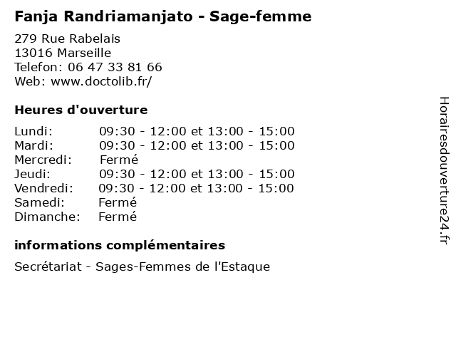 1 Fanja Randriamanjato - Sage-femme (Distance: 1,41 km) 149 Plage de l'Estaque, 13016 Marseille fanja, femme, medical, randriamanjato, sage, sagefemme 2 Marine Vigie - Sage-femme (Distance: 0,00 km) 279 Rue Rabelais, 13016 Marseille du, femme, marine, maternité, périnée, rééducation, sage, uro-gynécologique, vigie 3 Alice Melis - Sage-femme (Distance: 0,00 km) 279 Rue Rabelais, 13016 Marseille alice, du, femme, maternité, melis, périnée, rééducation, sage, uro-gynécologique 4 Pauline Riviere - Sage-femme (Distance: 0,00 km) 279 Rue Rabelais, 13016 Marseille du, femme, maternité, pauline, périnée, riviere, rééducation, sage, uro-gynécologique 5 Karine Boudier - Sage-femme (Distance: 0,00 km) 279 Rue Rabelais, 13016 Marseille boudier, du, femme, karine, maternité, périnée, rééducation, sage, uro-gynécologique 6 Audrey Rambert - Sage-femme - secrétariat (Distance: 5,31 km) 5 chemin de saint joseph à sainte marthe, 13014 Marseille audrey, diagnostic, echographie, femme, maternité, rambert, sage, sage-femme, secrétariat |