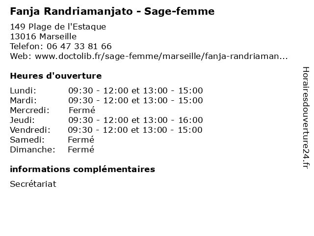 | Samedi | Fermé |
