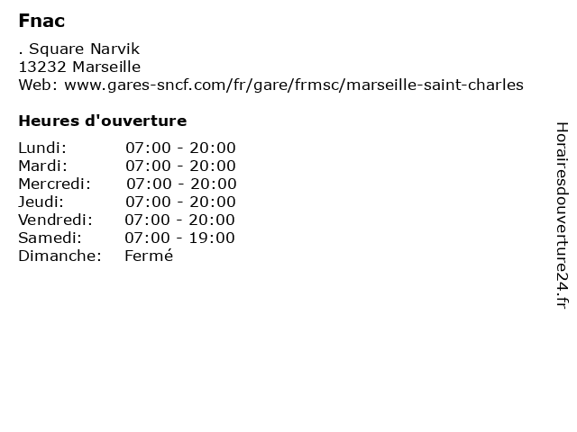 1 Fnac (Distance: 0,21 km) . Avenue du Général Leclerc, 13000 Marseille fnac, informatique, jeux vidéo, livres, photos, smartphones 2 FNAC Marseille - Gare St-Charles (Distance: 0,13 km) Avenue du Général Leclerc, 13003 Marseille charles, fnac, gare, marseille, st 3 FNAC Marseille Centre Bourse (Distance: 0,71 km) Cours Belsunce, 13001 Marseille bourse, centre, fnac, marseille 4 Relais Colis - FNAC MARSEILLE (Distance: 0,72 km) 17 Cours Belsunce, 13001 Marseille colis, de livraison, fnac, marseille, postaux, relais, services 5 FNAC Marseille - La Valentine (Distance: 7,92 km) Route de la Sablière, 13011 Marseille fnac, la, marseille, valentine 6 FNAC Aéroport Marseille-Provence (Distance: 20,13 km) D20H, 13700 Marignane aéroport, fnac, marseille, provence |