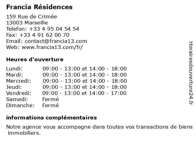 | Mercredi | 09:00-13:00 et 14:00-18:00 |