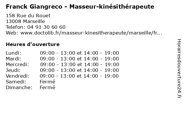 | Lundi | 09:00-13:00 et 14:00-19:00 |