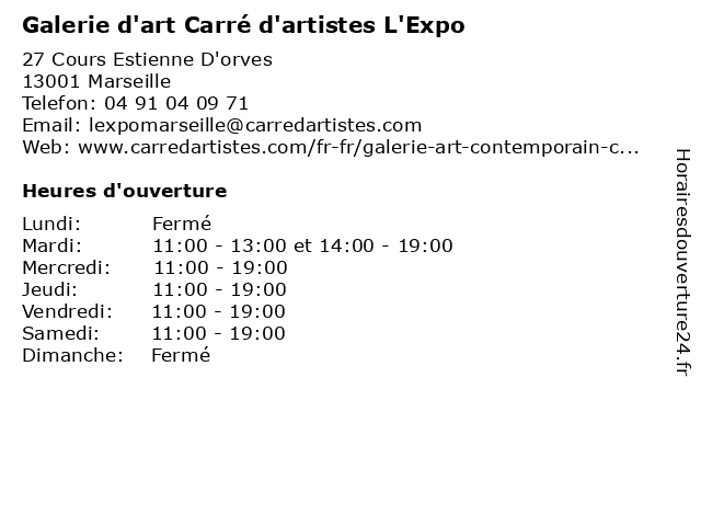 | Mercredi | 11:00-19:00 |
