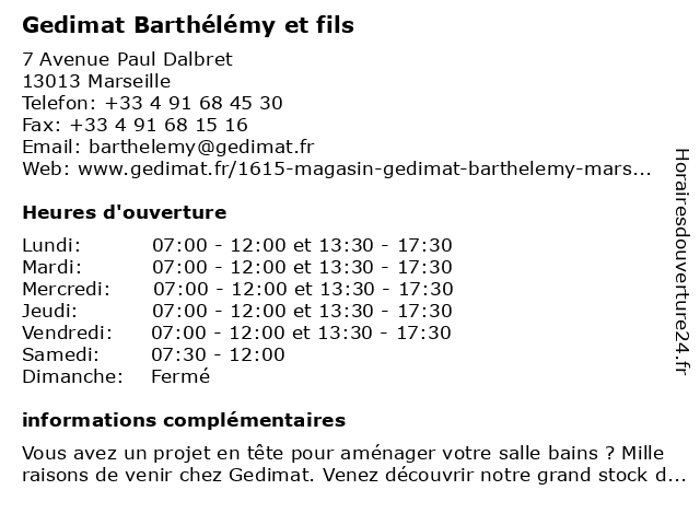 | Lundi | 07:00-12:00 et 13:30-17:30 |