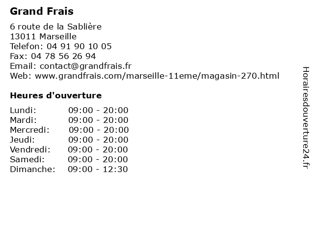 1 Grand Frais (Distance: 6,43 km) 262 rue Albert Einstein, 13013 Marseille alimentation, frais, fruits, grand, légumes, viandes 2 Grand Frais (Distance: 16,52 km) 503 route départementale 543, 13170 Les Pennes Mirabeau alimentation, courses, frais, fraîcheur, grand, grand frais, légumes, magasin, marché 3 Agence d'Intérim Manpower Marseille Grand Est (Distance: 0,04 km) Route de la Sablière, 13011 Marseille agence, agence de recrutement, agence intérim, agence pour l'emploi, cabinet de recrutement, cdi, d'intérim, est, grand, intérim, manpower, marseille, recrutement 4 Centre Commercial Grand V (Boutiques) (Distance: 0,73 km) 117 Traverse de la Montre, 13011 Marseille boutiques, centre, commercial, grand 5 Bouygues Telecom - Centre Commercial GRAND V (Distance: 0,91 km) , La Valentine,, 13011 Marseille accessories, bouygues, centre, commercial, connections, gadgets, grand, internet, mobile, phones, telecom, téléphonie 6 La boutique Casa de Grand (Distance: 0,93 km) 117 Traverse de la Montre,, 13011 Marseille boutique, casa, de, femme, grand, homme, la, mode |