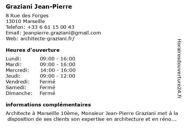 1 Dr Jade Graziani - ORL - Chirurgien de la face et du cou (Distance: 2,17 km) 24 Avenue du Prado, 13006 Marseille chirurgien, cou, de, dr, du, et, face, graziani, jade, la, laryngologie, orl, oto, rhino 2 François Graziani - Masseur-kinésithérapeute (Distance: 2,31 km) 33 Boulevard du Cabot, 13009 Marseille bien-être, en, forme, françois, graziani, kinésithérapeute, kinésithérapie, masseur, remise, rééducation 3 Graziani Grimaldi Juliette (Distance: 2,65 km) 1 Place Jean Jaures, 13005 Marseille graziani, grimaldi, juliette, restaurants 4 Dr Noel Graziani - Neurochirurgien (Distance: 3,30 km) - Boulevard du Redon, 13009 Marseille cerveau, dr, graziani, nerf, neurochirurgien, neurologie, neurologue, noel 5 Graziani Francois (Distance: 12,83 km) 10 Allee Amiral Courbet, 13470 Carnoux En Provence bailleurs, biens, francois, graziani, immobiliers, nra 6 Dr Vanina Graziani - Médecin généraliste (Distance: 31,72 km) 7 Rue Leon Gambetta, 13500 Martigues docteur, dr, generaliste, graziani, généraliste, medical, médecin, soin, vanina |