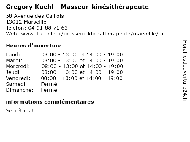 | Lundi | 08:00-13:00 et 14:00-19:00 |