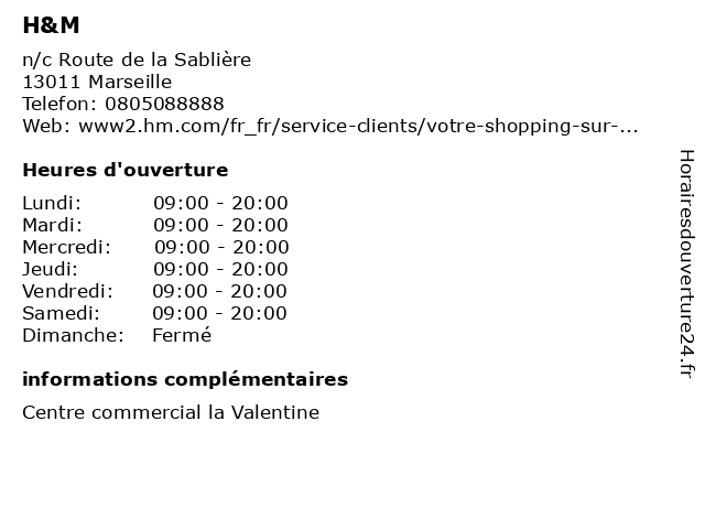 1 H&M (Distance: 8,09 km) 75 Rue Saint Ferréol, 13001 Marseille chaussures, femme, h&m, jeans, pantalons, tendances, vetements 2 H&M (Distance: 9,39 km) 9 Quai du Lazaret, 13002 Marseille femme, h&m, jeans, mode, pantalons, tendances, vetements 3 H&M (Distance: 13,17 km) 11 Avenue de Saint Antoine, 13015 Marseille beaute, chaussures, deco, enfants, h&m, mode femmes, mode hommes, sport 4 H&M (Distance: 17,55 km) s/n Chemin départementale 6, 13480 Cabriès boutique, boutiques, centre, commercial, h&m, mode, prêt à porter 5 H&M (Distance: 18,43 km) - Place du Général de Gaulle, 13100 Aix en Provence enfants, h&m, hommes, la mode, la qualité, magasins de mode pour femmes 6 Un Jour Ailleurs (Distance: 0,00 km) n/c Route de la Sablière, 13011 Marseille ailleurs, ailleursvetements, femme, homme, jeans, jour, mode, pantalons, tendances, un |