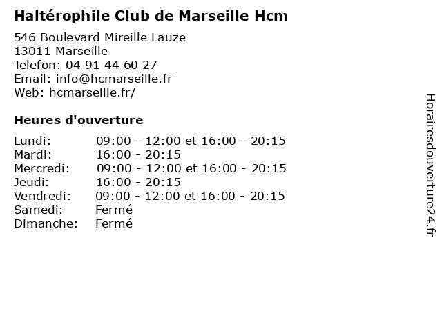 | Lundi | 09:00-12:00 et 16:00-20:15 |