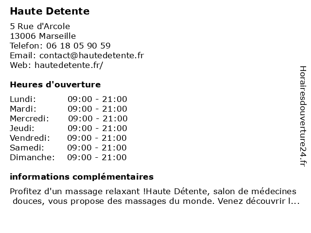 1 Snack La Detente (Distance: 19,28 km) Zone Industrielle La Palun, 13700 Marignane detente, restaurants, snack 2 Rong Shu Spa (Distance: 0,23 km) 8 Rue Emile Pollak, 13006 Marseille bien-etre, massages, relaxation, rong, sante, shu, spa 3 Ánmò (Distance: 0,33 km) 4 Rue Armény, 13006 Marseille bien-entre, massages, relaxation, santé, thérapies, ánmò 4 Massage Rituel Relaxant (Distance: 0,38 km) 17 Rue Venture, 13001 Marseille bien-etre, massage, massages, relax, relaxant, rituel, sante 5 La Maison du Tui Na (Distance: 0,39 km) 4 Rue Sainte, 13001 Marseille bien-etre, du, ecole, la, maison, massages, na, relax, sante, tiu, tui 6 Le Paradis du Bien-Etre (Distance: 0,46 km) 154 Rue de Rome, 13006 Marseille bien, du, etre, le, paradis |