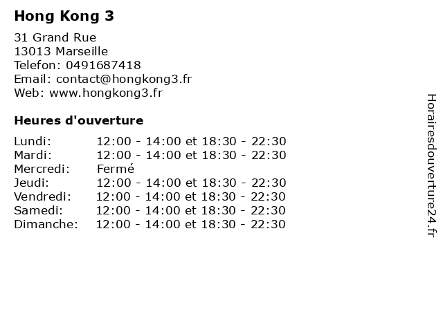 | Dimanche | 12:00-14:00 et 18:30-22:30 |
