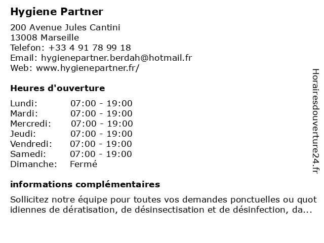 1 Select Service Partner (Distance: 0,86 km) Ssp Residence Le Grand Pavois, 13008 Marseille partner, restaurants, select, service 5 Hygiene Marine (Distance: 12,77 km) 11 Avenue Simon Laplace, 13470 Carnoux-en-Provence hygiene, marine 6 Casino Drive (Distance: 1,40 km) 22 Boulevard Jean Moulin, 13205 Marseille beaute, bio, casino, drive, hygiene, supermarche |