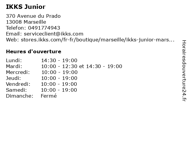 1 IKKS Junior (Distance: 2,72 km) 23 Rue Paradis, 13001 Marseille bebe, boutique, enfants, homme, ikks, junior, mode femme 2 IKKS Junior (Distance: 3,41 km) 21 Cellule, 13011 Marseille bebe, boutique, enfants, homme, ikks, junior, mode femme 3 IKKS Junior (Distance: 7,95 km) . Route de la Sabliere, 13011 Marseiile accessoires, femmes, habillement, hommes, ikks, junior, mode, pret-à-porter, vetements 4 IKKS Junior (Distance: 16,37 km) . Avenue Plan De Campagne, 13480 Cabries accessoires, boutique, enfants, ikks, junior, magasin, prêt à porter 5 Junior Senior (Distance: 1,30 km) 80 Rue Saint-Sébastien, 13006 Marseille a la personne, garde d'enfants, junior, senior, services 6 IKKS Men (Distance: 2,66 km) 33 Rue Paradis, 13001 Marseille bebe, boutique, enfants, homme, ikks, men, mode femme |