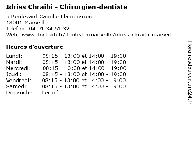 | Lundi | 08:15-13:00 et 14:00-19:00 |