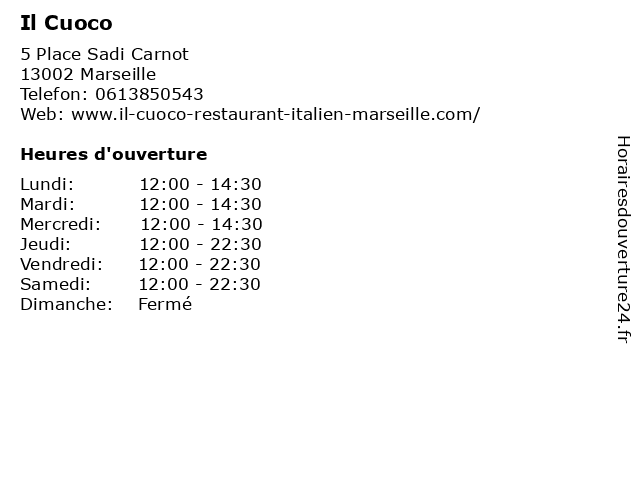 | Jeudi | 12:00-22:30 |