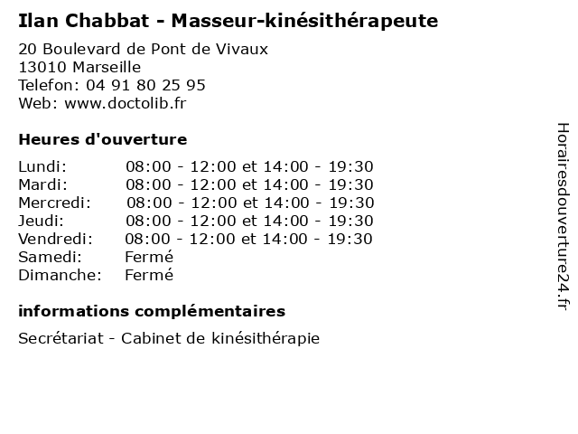 | Lundi | 08:00-12:00 et 14:00-19:30 |