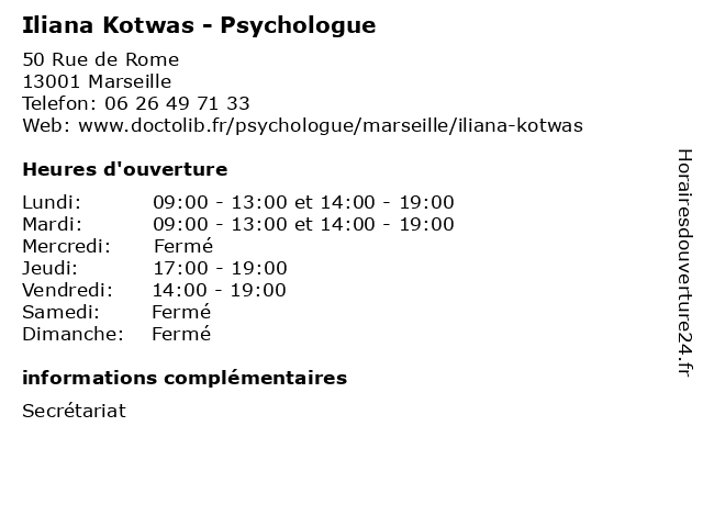 | Lundi | 09:00-13:00 et 14:00-19:00 |